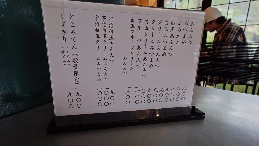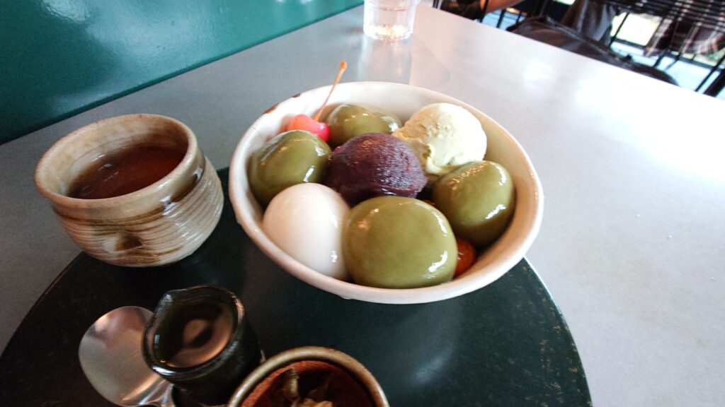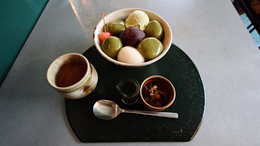 店員さんのおすすめは、普通の白玉と抹茶白玉の両方を楽しめる「宇治白玉」だそうです。