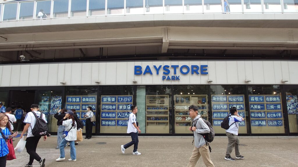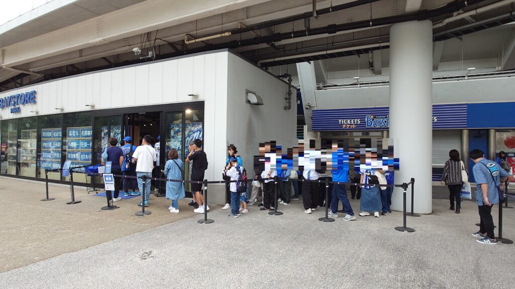 横浜スタジアムのグッズショップ「BAY STORE」も数分並ぶだけで入場可能でした。