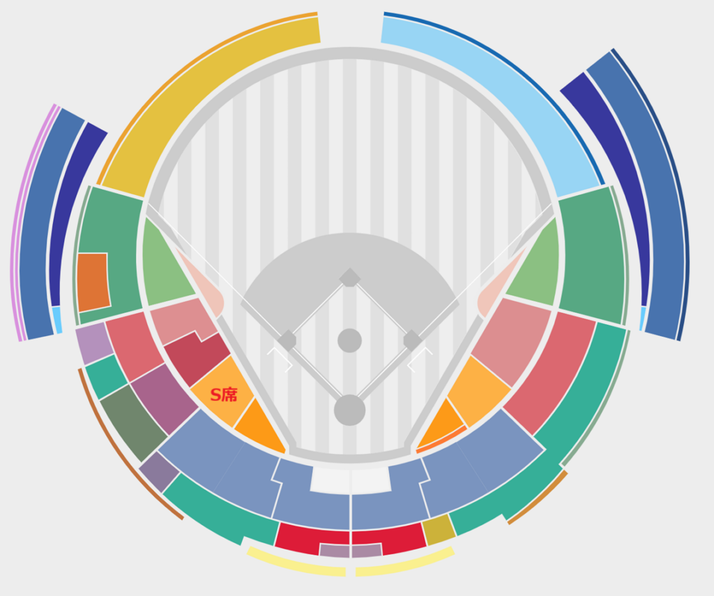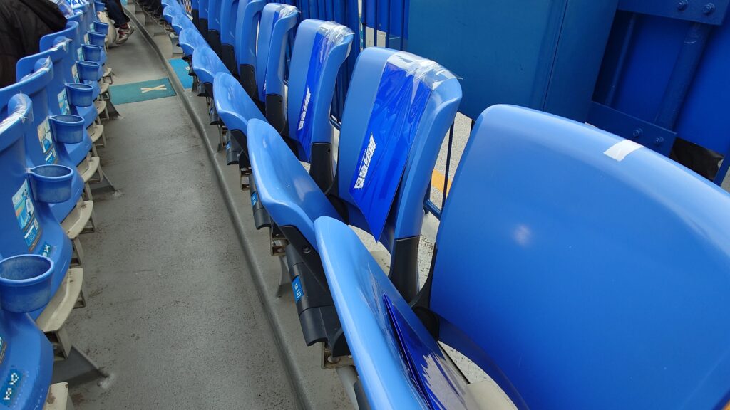 横浜スタジアムって、SS席以外は内野席の座席間とても狭いんですよね。東京ドームよりも狭く、成人男性二人座ればかなりキツいでしょうし、女性二人でも結構ギリかと……。なので私は基本的に横浜スタジアムではウィングフロントです。とにかく座席間が広い。そこが最高で、オールスターのときもその座席で観戦しています。グラウンドまではやや遠めかもしれませんが、フロントならまだマシですしね。