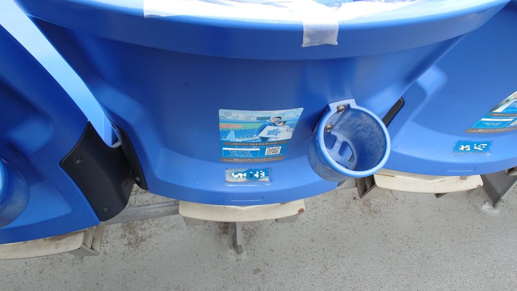 今日の試合では「人文字」の演出があるようで、座席には青と白の紙が貼りつけてありました。