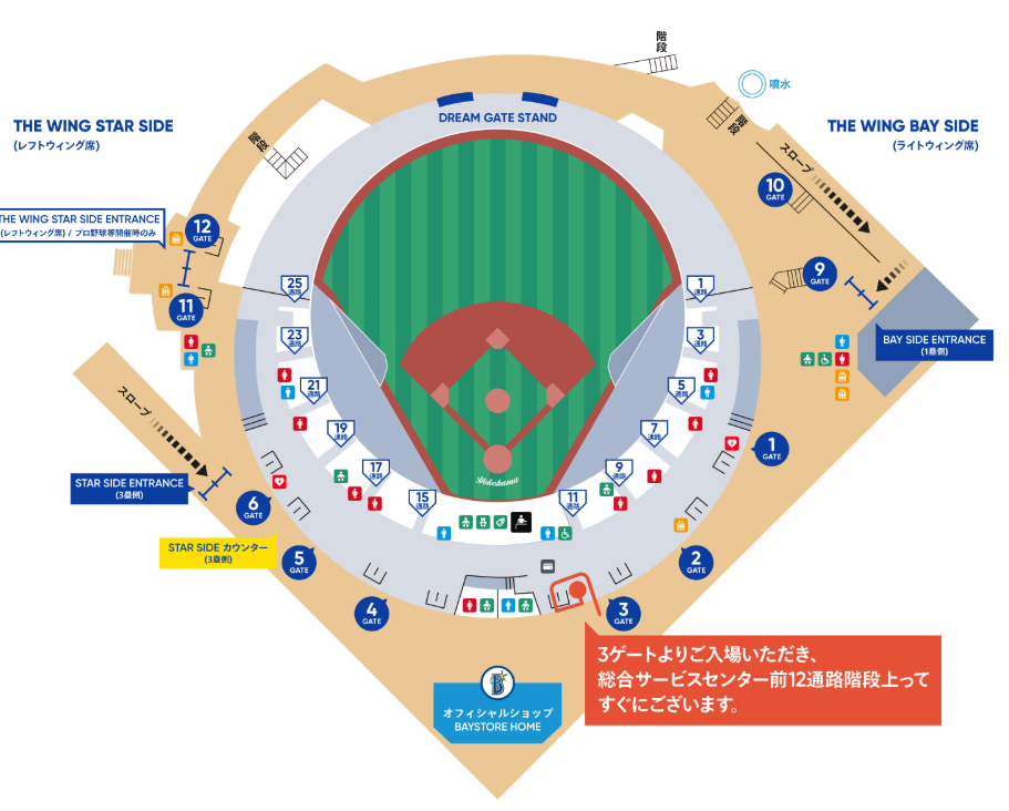 横浜スタジアムは設計が古いため通路が狭く、また動線もイマイチです。