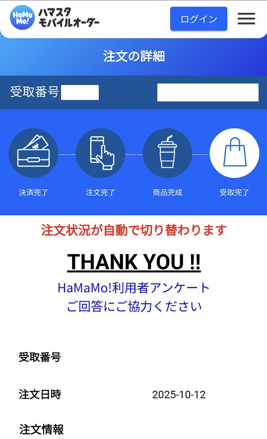 今回は、初めて「ハマスタモバイルオーダー」を使ってみました。