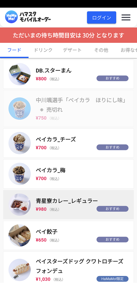 注文できる商品は限定されていますが、横浜スタジアムの人気メニューは抑えています。