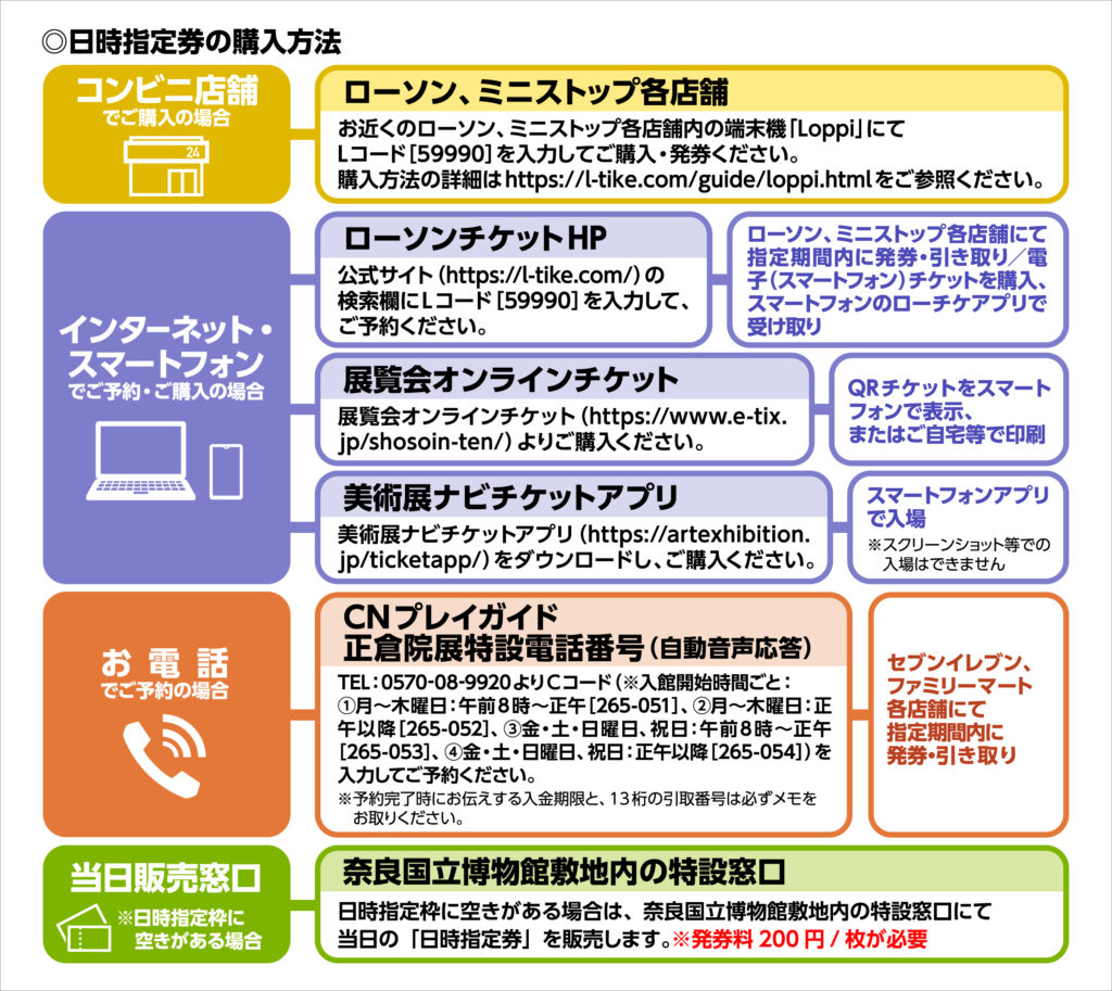 2025年の正倉院展のチケットは、主に「ローチケ」と「展覧会オンラインチケット」で販売されます。