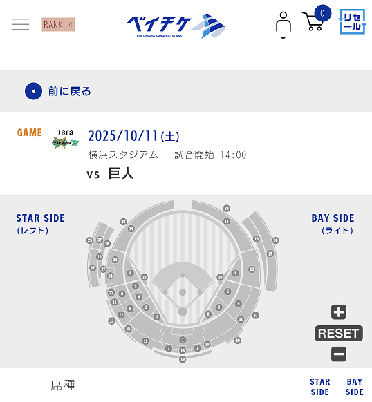 案の定、RANK4が参戦できる10月9日(木)12:00時点では全席売り切れでした。