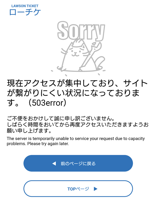 その後、ローチケにチャレンジを続けたのですが、かなり混雑しているのでなかなか進みません。