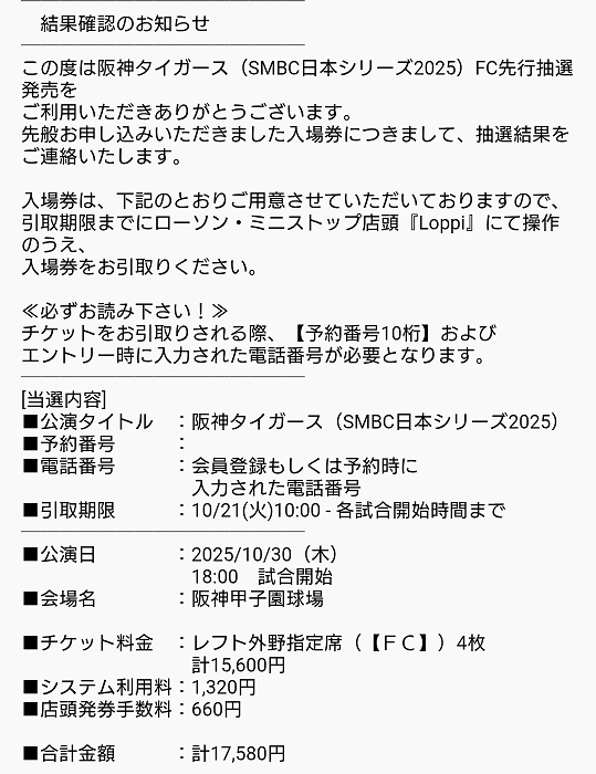 もしタイガースがCSで敗退した場合、申し込みは無効となります。