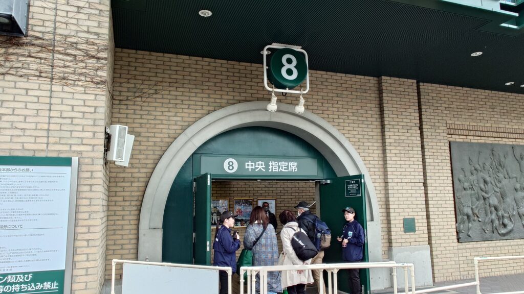 いつもは中央指定席で観戦するので、この8号門から入場します。