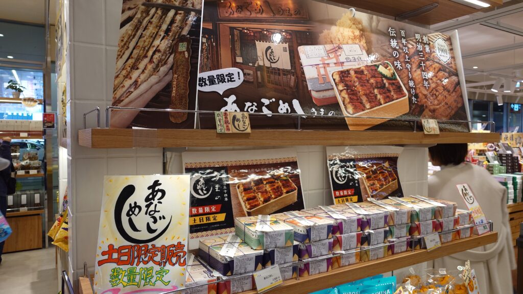 2025年にオープンしたミナモアの1階にある「おみやげ街道」に、じつはこっそり「うえのあなごめし」が販売しているんです。