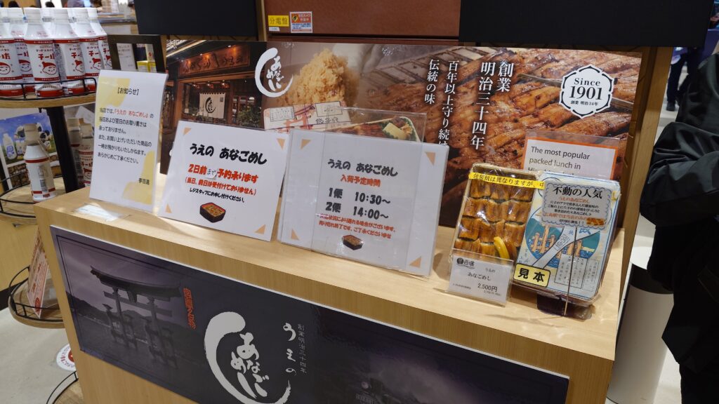 ここは穴場なので「うえのあなごめし」が欲しい場合はぜひ。
