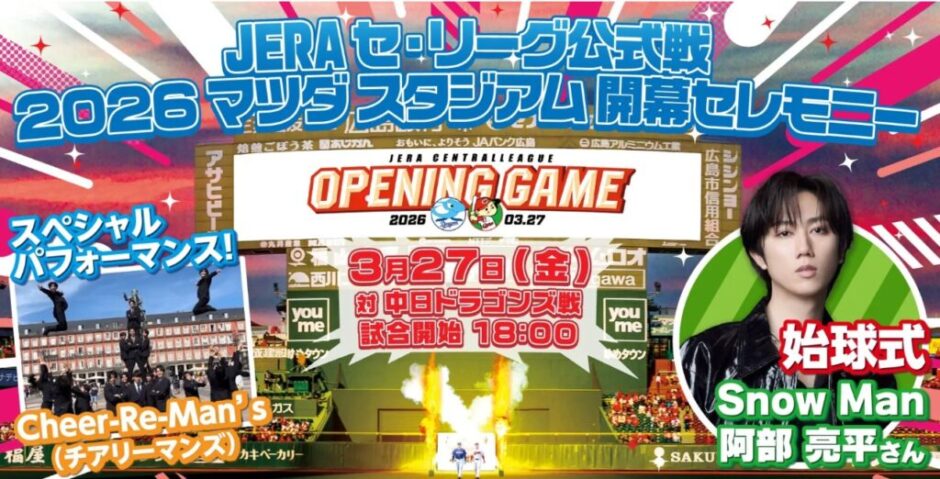 まとめ:2026年マツダスタジアム・カープ開幕戦にSnow Manの阿部 亮平さん登場!