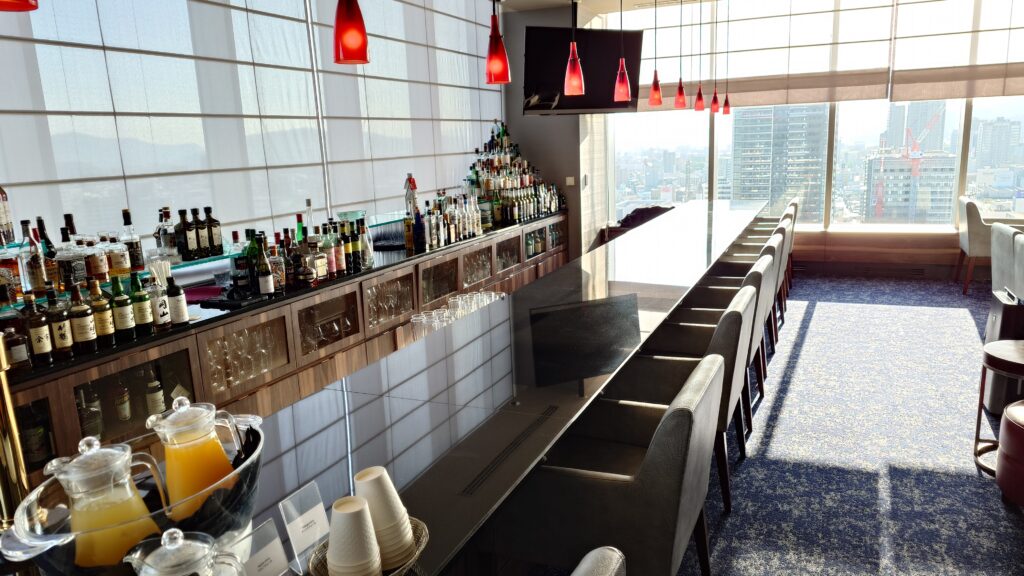 ラウンジアクセス権付きのお部屋を予約すると、最上階のバー「スカイバー&ラウンジ 洊」が無料で利用できます。