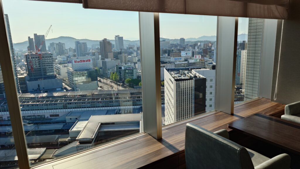 最上階となる20階、岡山駅もよく見えるので、電車好きならかなり気に入ると思います。
