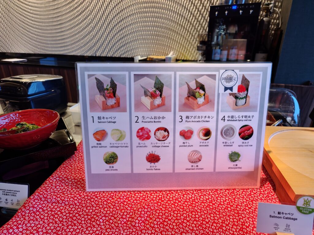 岡山名物としてはちらし寿司のほうがいいと思うのですが、客層を考えるとおにぎりのほうが向いてると思います。