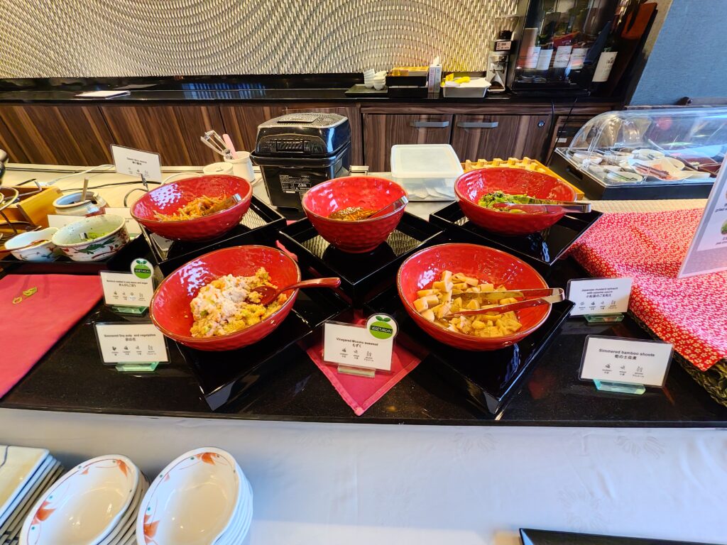 朝食も品数が多く、岡山名物も程よく揃ったいいメニューです。