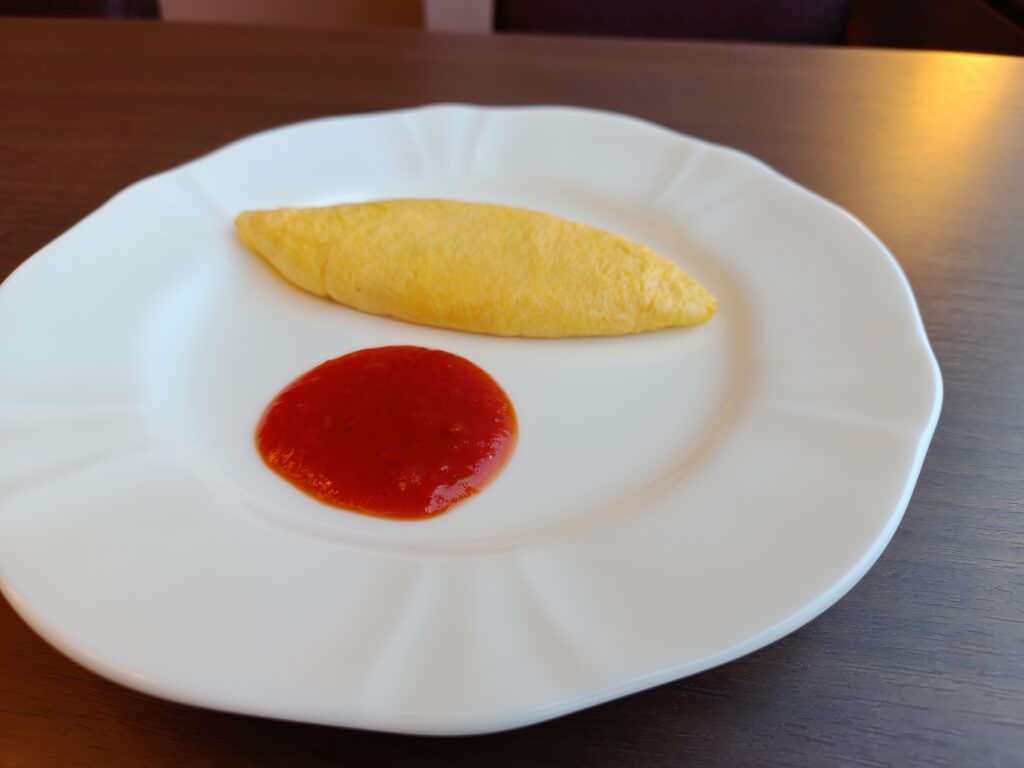 岡山は全体的に火を強めに入れる傾向があるので、しっかり目のオムレツが多いです。