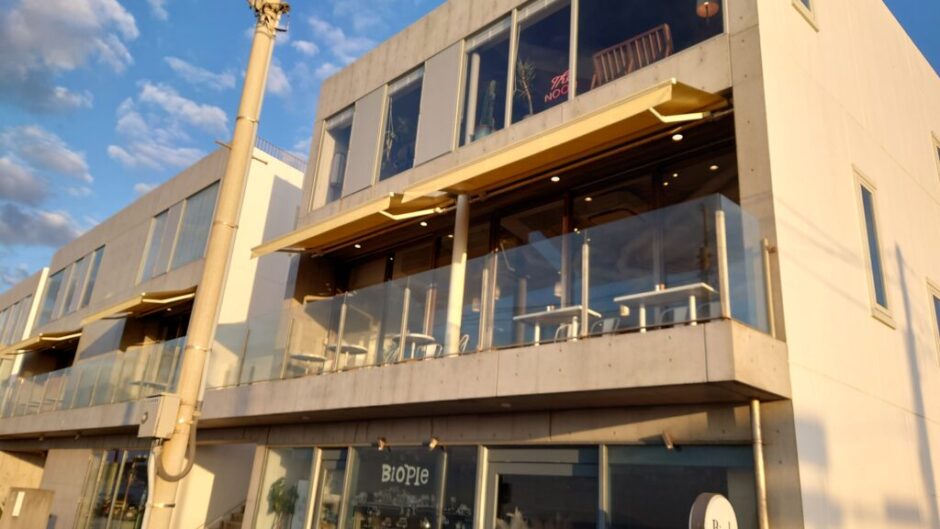 七里ガ浜の風景をしばらく堪能した後、開店時間の7時が近づいたので、ビルズのある建物へ向かいます。