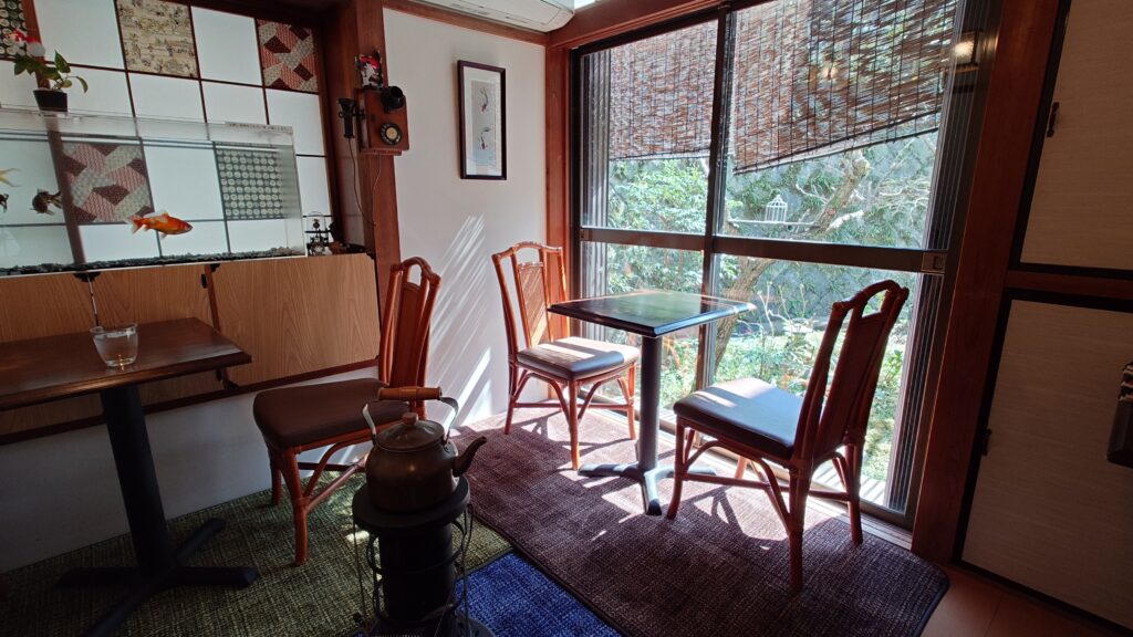 金魚の栖は、杉本寺の前を通る県道204号線から少し中に入ったところにある小さなカフェです。