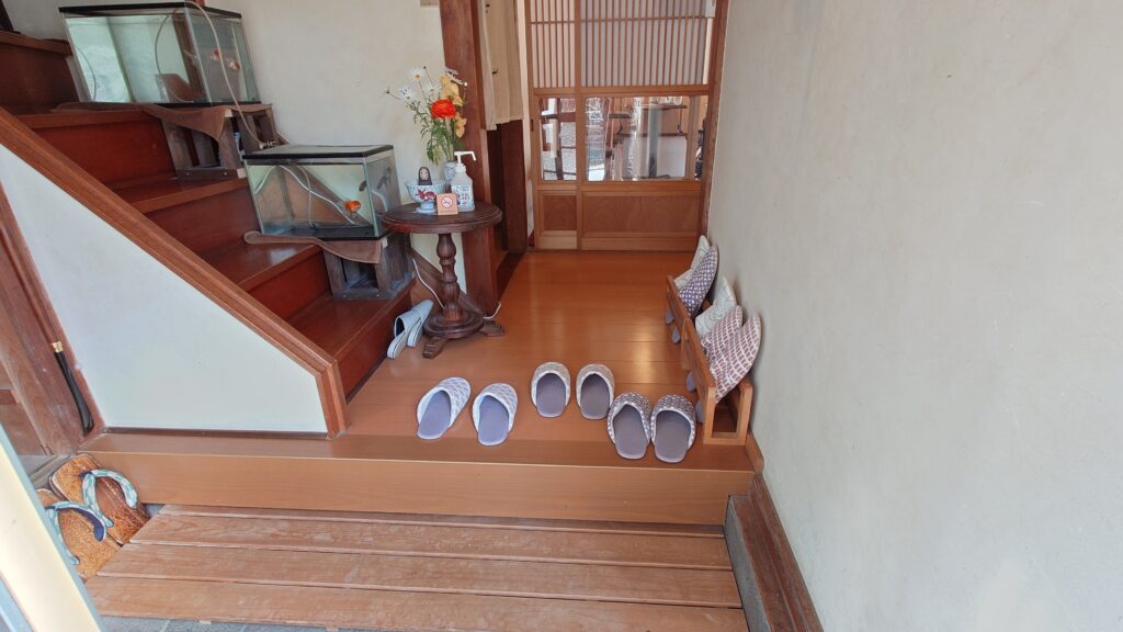 玄関先で靴を脱ぎます。