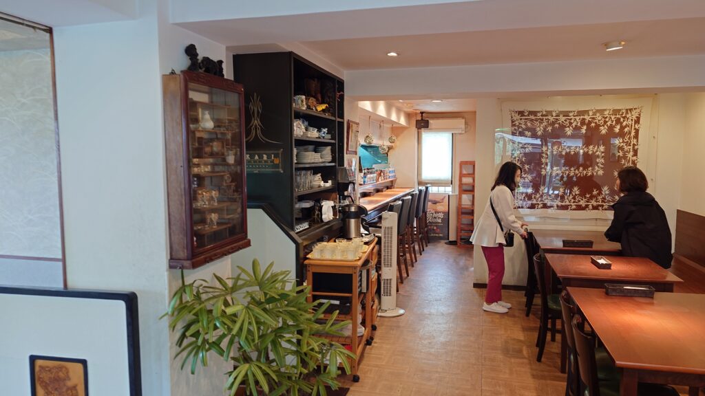 店内はこんな感じで、カウンターが5席、テーブルが5席、あとは座敷のテーブルが2席くらいです。