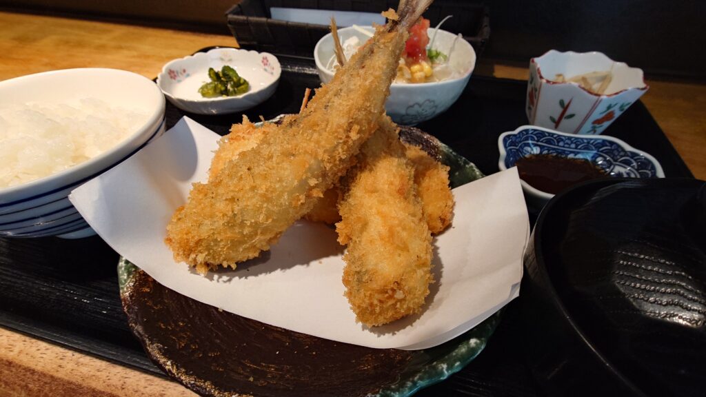 肉厚で、しっかりの骨抜きされたアジを丸ごと食べると、ホントに美味しいです!