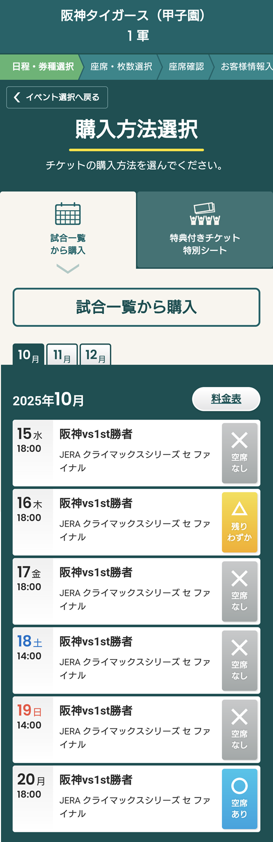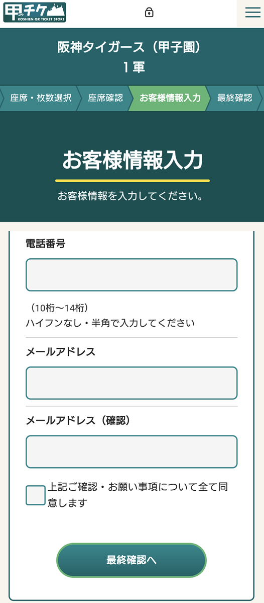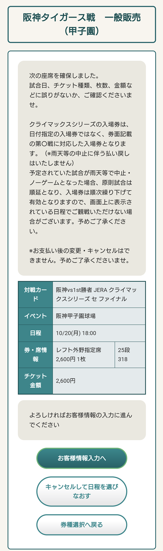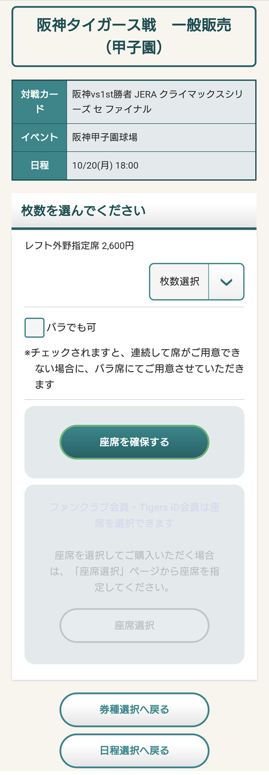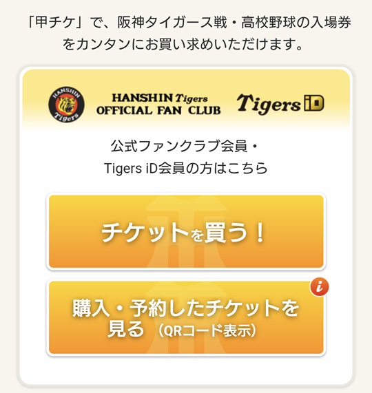 例えば、タイガースの公式戦はFC会員登録かTigersID必須、高校野球は登録なしでも購入可能です。