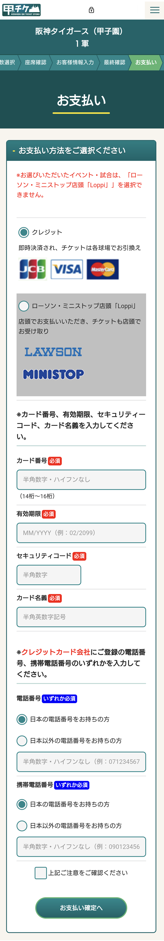 ただし、CSや高校野球のチケットなどクレカ決済限定の公演もあるので事前によく確認しましょう。