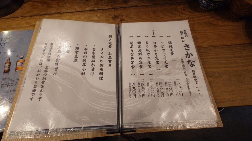 「朝ごはん(鎌倉駅前)さかな」は、居酒屋さんで朝ご飯をいただける感じのお店です。