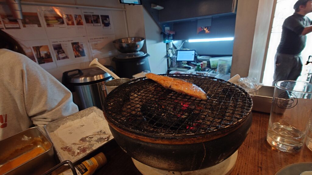 鮭は、炭火でしっかり焼いてくれます。